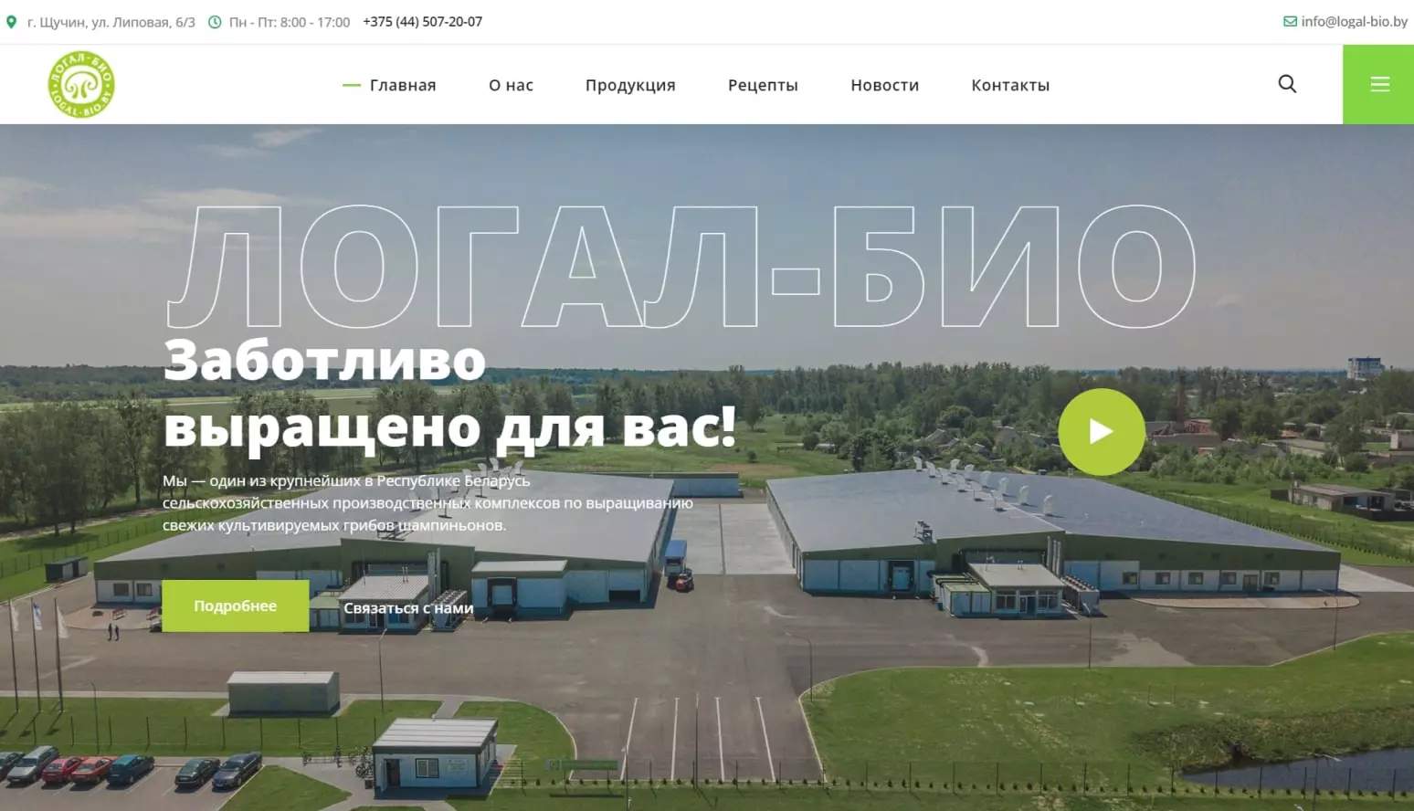 «Логал-Био» – высокотехнологичное безотходное предприятие, которое занимается выращиванием свежих культивруемых грибов шампиньонов. Было необходимо разработать корпоративный сайт в короткие сроки, на котором была бы размещена информация о компании, ее деятельности и общественной жизни, а также каталог продукции.