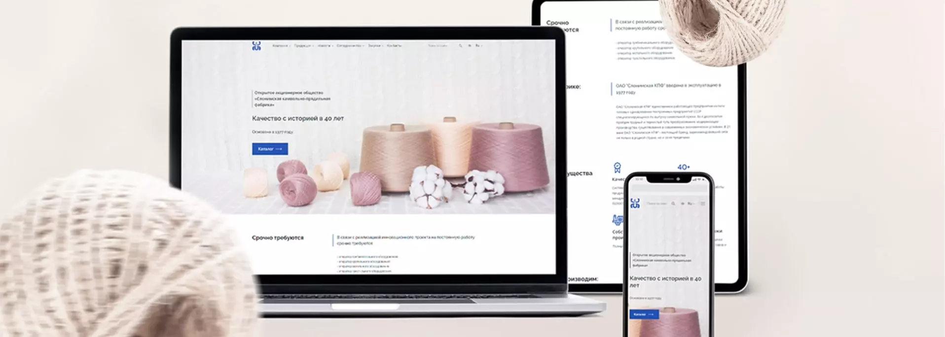 Слонимская камвольно-прядильная фабрика специализируется на выпуске камвольной пряжи. Стояла задача разработать новый сайт на принципах юзабилити и трендах графического дизайна.